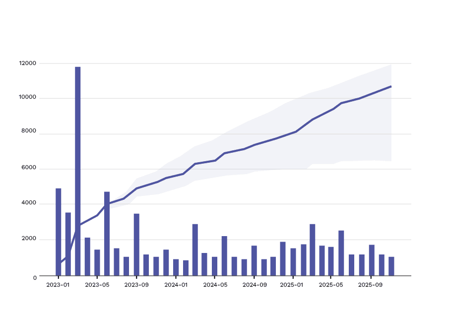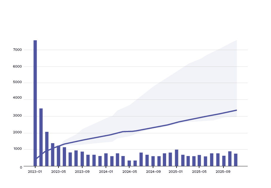 - Die durchschnittliche retention rate (rr) ist hoch – also der Anteil Leser:innen/Hörer:innen, die Teil n und Teil n+1 einer Serie lesen. Bei rr-Werten von 60–70 % kann man von einer sehr guten Serienbindung sprechen, bei >70 % von einer starke Marke (selten außerhalb Hörbuch), und bei rr-Werten >80 % bereits von einem Fan-Franchise (kommt v.a. in den Genres wie Fantasy, Romance, Cosy Crime etc. vor)