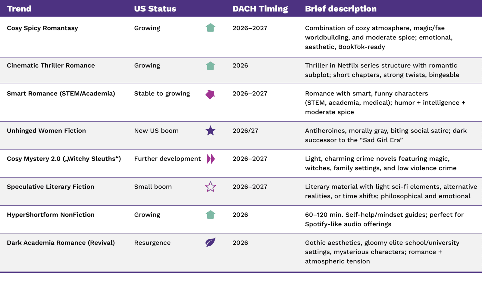Based on current trends in the US market, it can be assumed that the following genre trends will gain relevance in the DACH market this year and next: