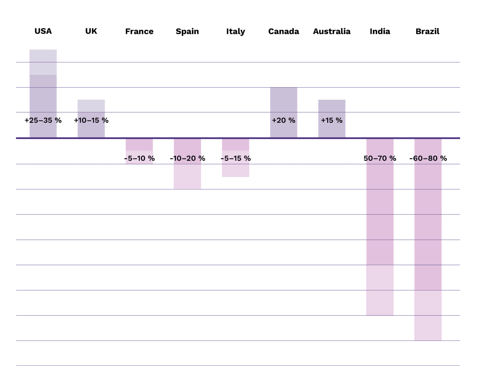 The following overview supports flexible international pricing based on the price for the German market and follows approximately the following calculation rules: